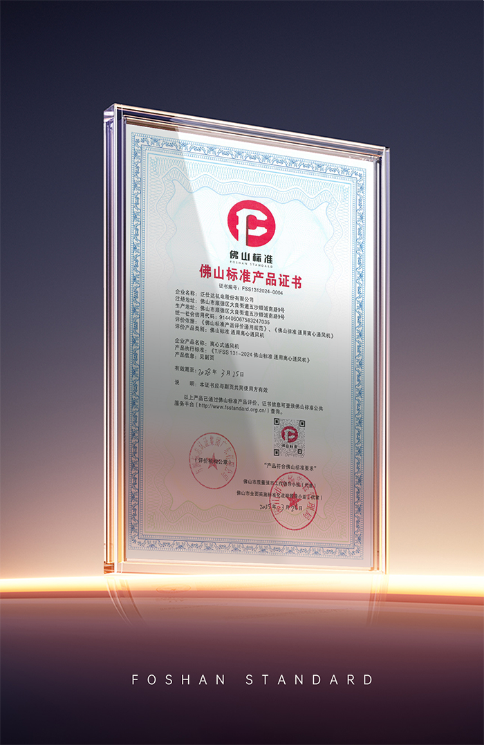 質(zhì)量領(lǐng)航 | 泛仕達(dá)獲評(píng)“佛山標(biāo)準(zhǔn)產(chǎn)品”,引領(lǐng)智能風(fēng)機(jī)行業(yè)新標(biāo)桿