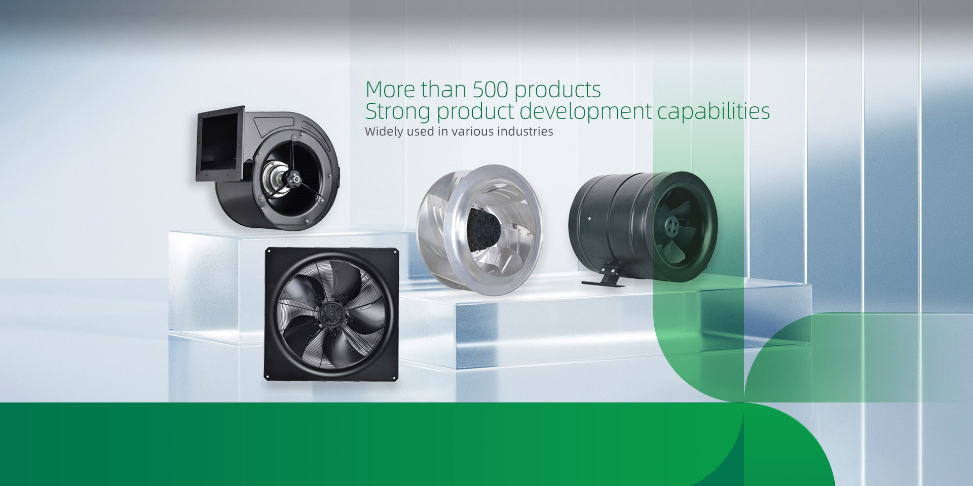 Axial FansAxial fan is a kind of ventilation equipment which conveys gas through axial flow, and its core impeller is composed of hub and twisted blades. When working, the motor drives the impeller to rotate, and the blades push the gas to flow along the axial direction (parallel to the direction of the rotating axis), and the gas flows directly from the inlet end to the outlet end of the fan, and the flow direction is basically unchanged, which is similar to the principle of propeller propulsion.More